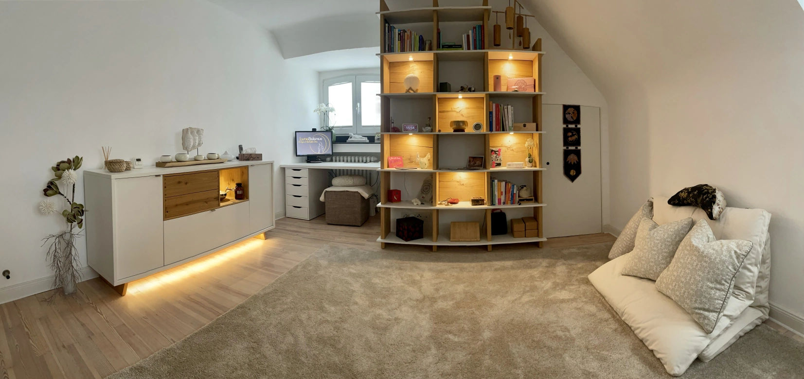 Den LunaBalance „FREIRAUM“ habe ich speziell als Rückzugsort für entspannte Momente geschaffen. Er ist reserviert für die persönlichen und individuell gestalteten Entspannungssessions gemäß dem LunaBalance Entspannungskonzept.